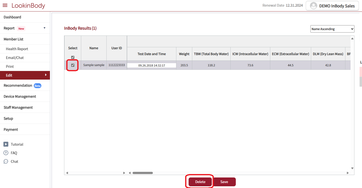 This will walk you through the process of deleting a test result from the LookinBody Web Portal. You will need to have access to the Admin ID in order to proceed.