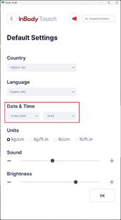 - Step 1: InBody Touch Settings → Basic Settings → “Date & Time” (Confirm that the configured time matches the local time).